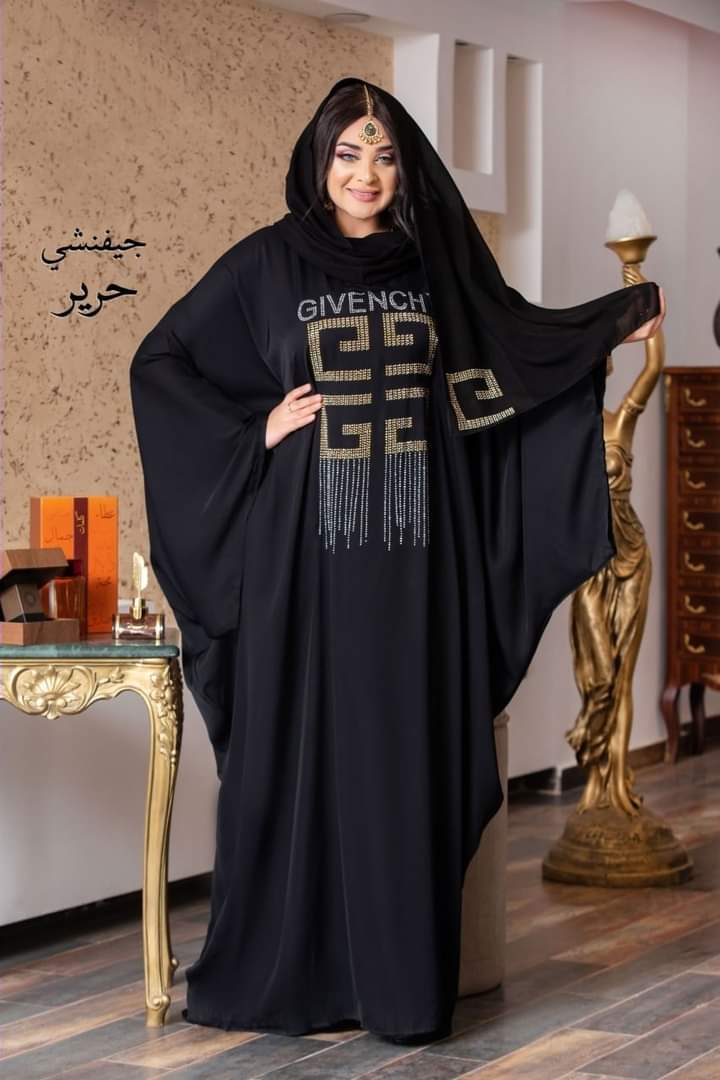 عباية سوداء حرير سعودي مطرزة بالكرستال ماركة G