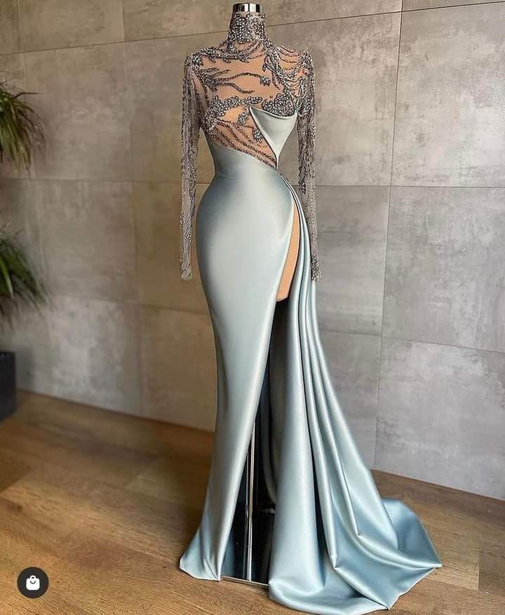 فستان سوارية طويل وانيق بلون الفضي حرير براند اصلي مستورد